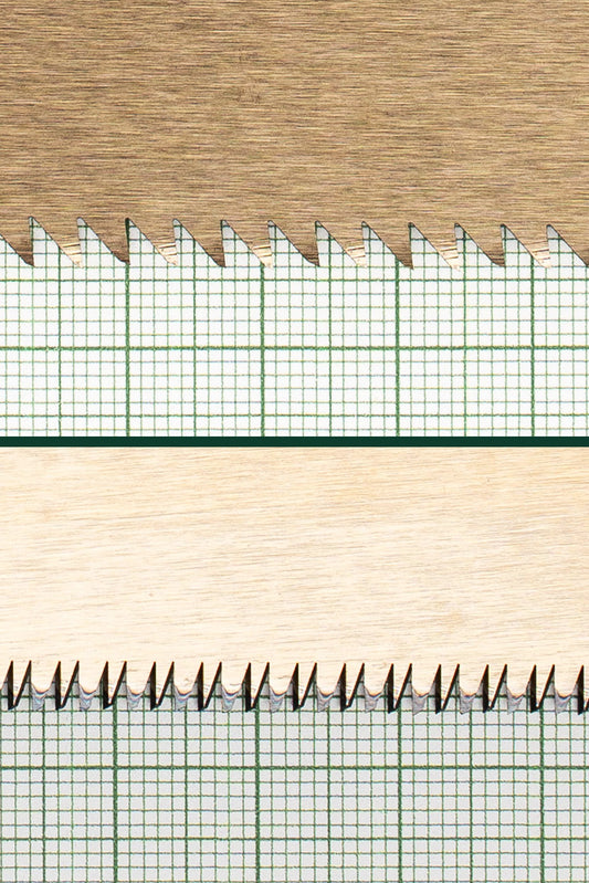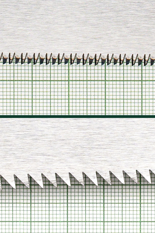 Das verringert natürlich die Schnittbreite und bedeutet, dass weniger Material abgetragen werden muss, um die gleiche Schnitttiefe zu erreichen. So braucht man also weniger Energie, um mit der Japansäge zu arbeiten.